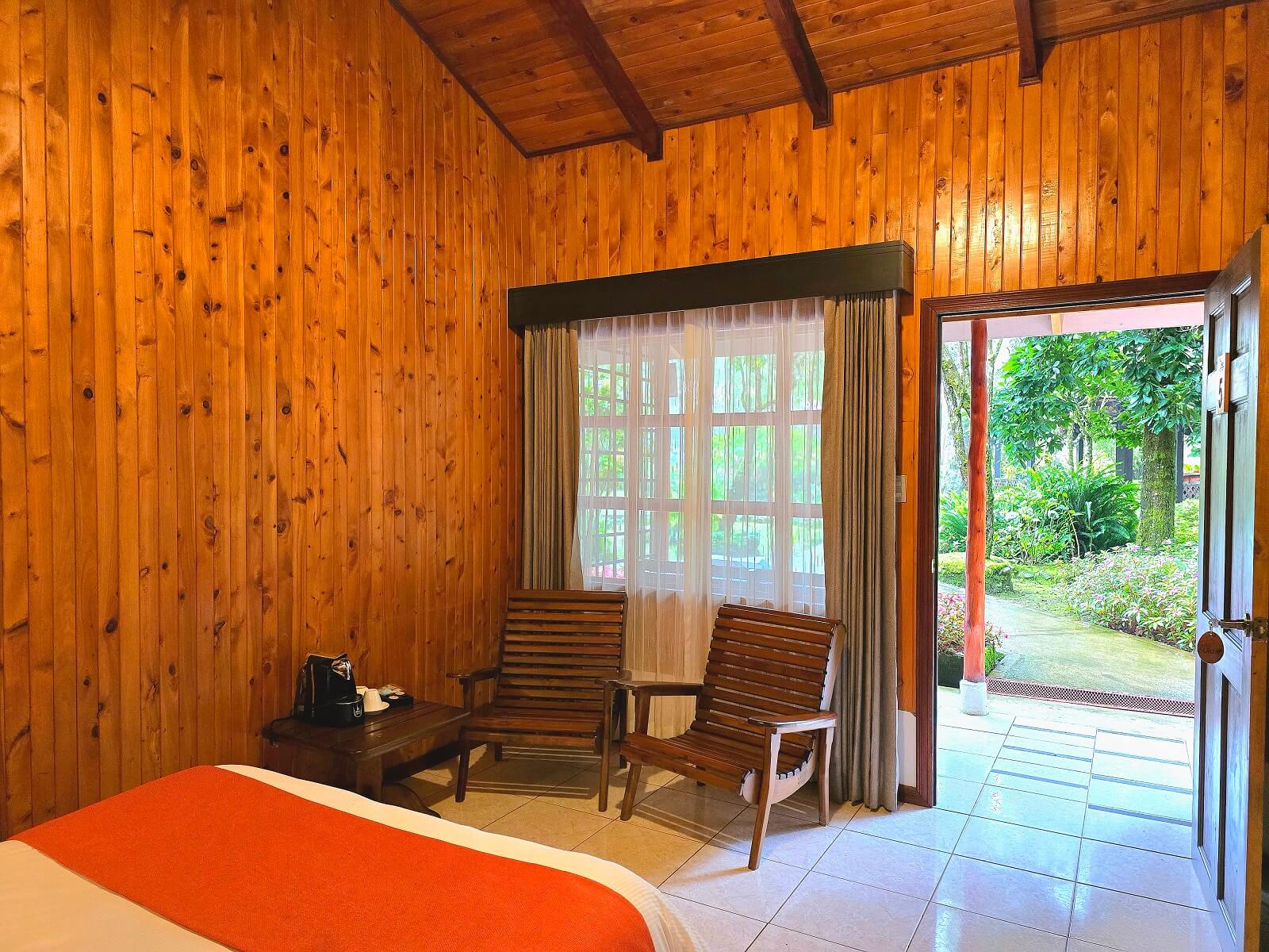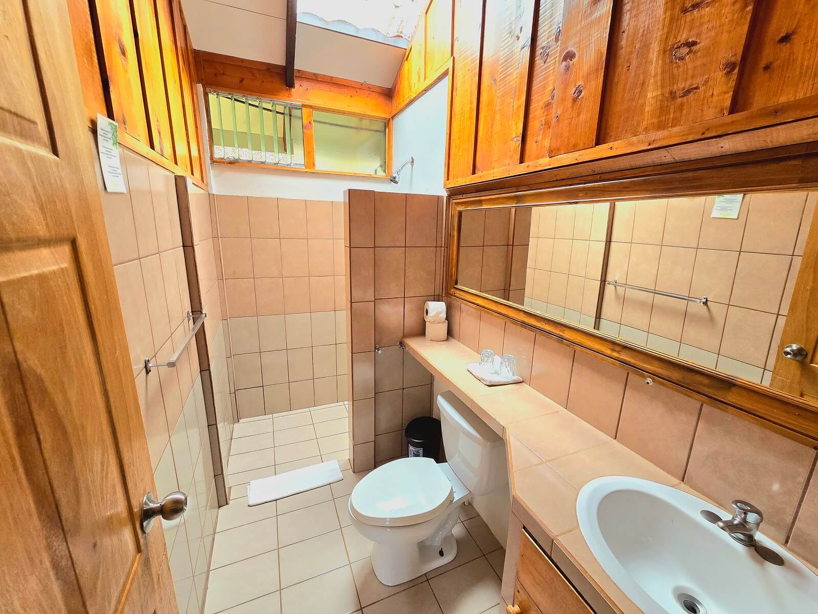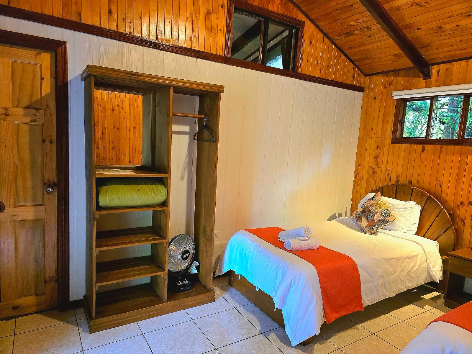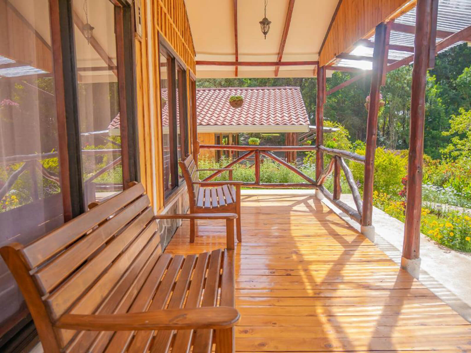 Te invitamos a alojarte en una acogedora habitación tipo cabaña de madera con corredor con vista, closet, agua caliente, ducha, calefactor portátil y todo ello rodeado de los jardines que son visitados por los colibríes y varias especies de aves.