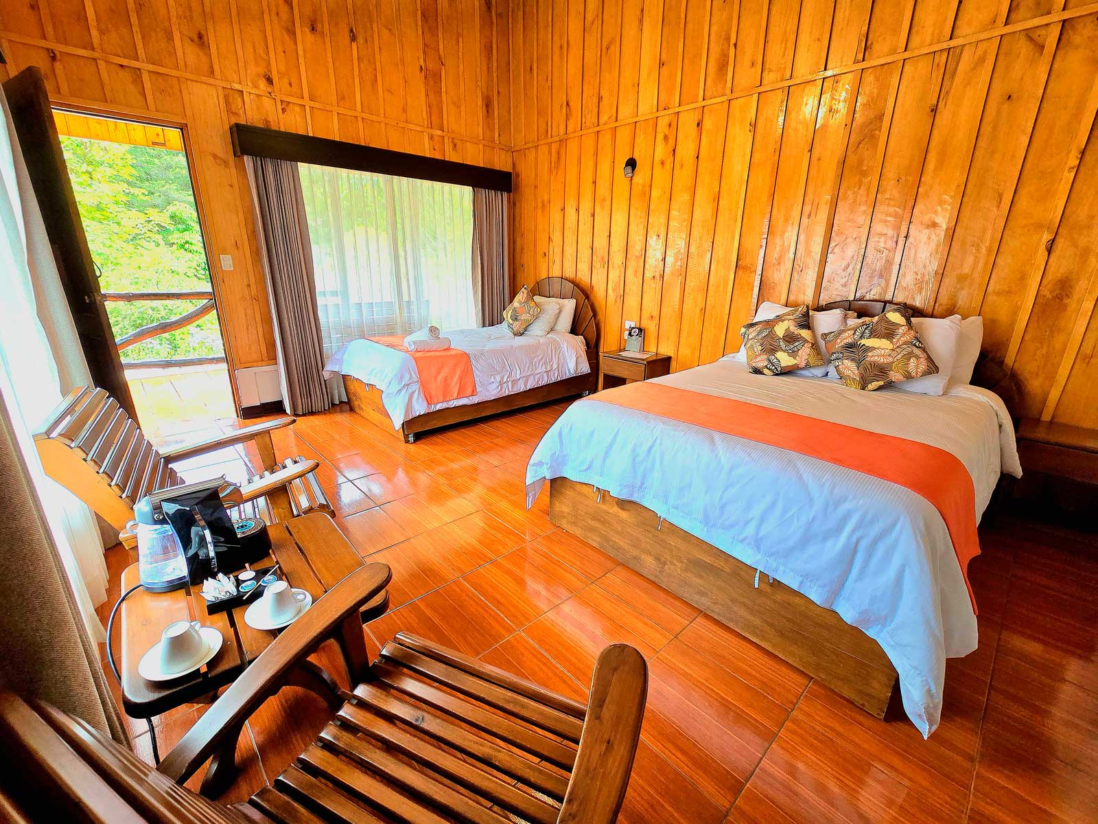 Nuestras habitaciones estándar se encuentran delicadamente acondicionadas y te transportarán a un ambiente acorde a la naturaleza que nos rodea.  Te permitirán pasar una estancia acogedora y cálida, rodeado de los sonidos de las aves.
